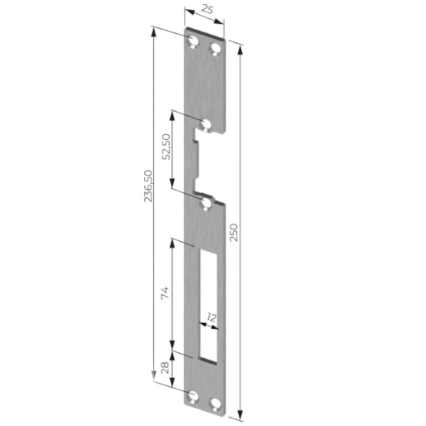 - סרט חזית עם פתח לכניסת בריחי מנעול חבוי במידות - 12 מ"מ / 74 מ"מ