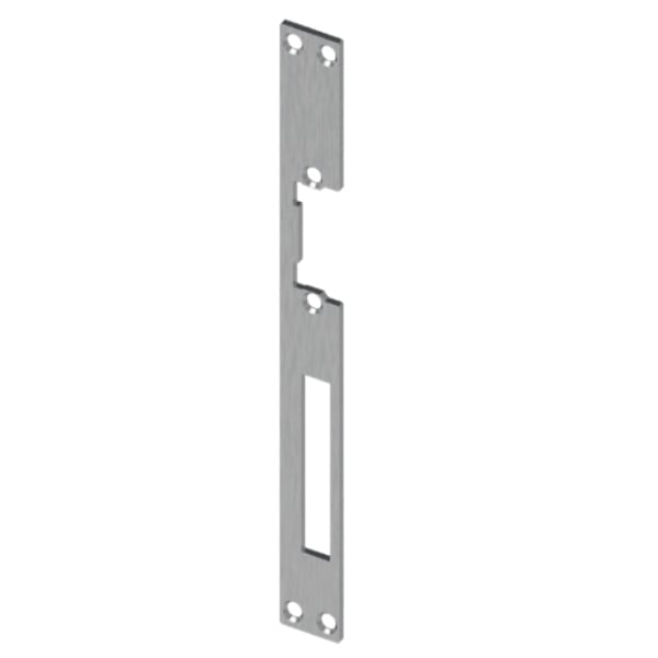 סרט חזית להתקנת מנעול חבוי חשמלי המשמש כבסיס ייצוב למנעול החשמלי ומותקן בתוך משקוף הדלת מול לשונית הקפיצית נטרקת של המנעול חבוי