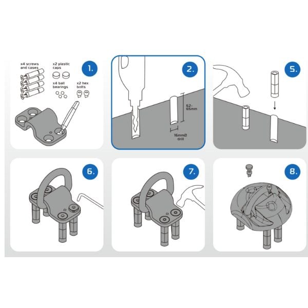 - יש לבחור משטח יציב מבטון מזוין או משטח ברזל להתקנת העוגן