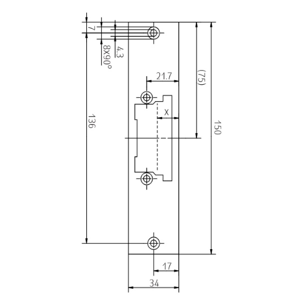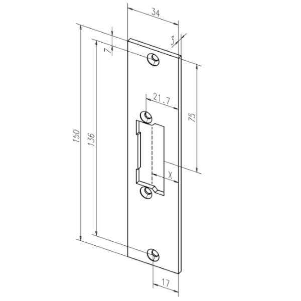 | Product description | Flat striking plate without dead bolt cutout |