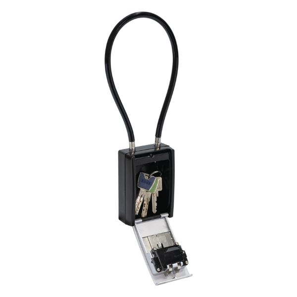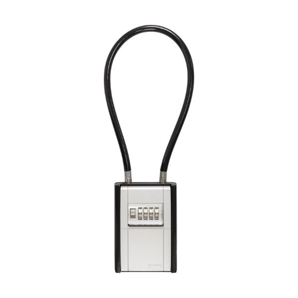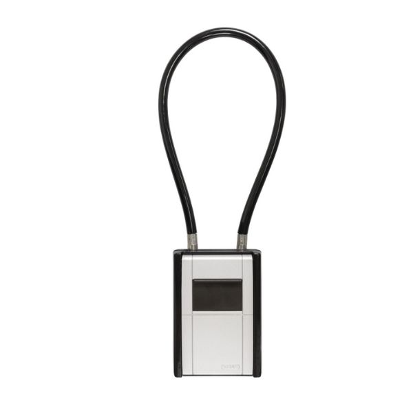- כבל הפלדה בעובי 10 מ"מ מספק יכולת הסתגלות נוספת: הוא מאפשר חיבור גמיש של ה-KeyGarage™ לגדרות, מעקות או ידיות - מושלם לשימוש זמני. ניתן לחבר את הכבל סביב חפצים בהיקף של עד 50 ס"מ או למרחק מקסימלי של עד 20 ס"מ. ציפוי הפלסטיק מונע גם שריטות על משטחים רגישים. גוף המתכת החזק וכיסוי הנעילה עשוי אבץ יצוק הופכים את ה-KeyGarage™ ליציב ובטוח במיוחד. ניתן לכסות את גלגלי המספרים גם באמצעות כיסוי מגן פרקטי עם מנגנון הזזה. אנו ממליצים להשתמש ב-KeyGarage™ 797 FLEX באזור מוגן חיצוני או בתוך הבית.