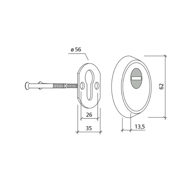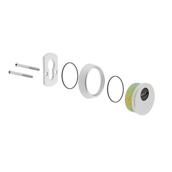 - קיט רוזטה : מגן צילינדר ייחודי , רוזטה אובאלית להתקנה פנימית, 2 ברגי דוך מיוחדים, 2 טבעות מתכת